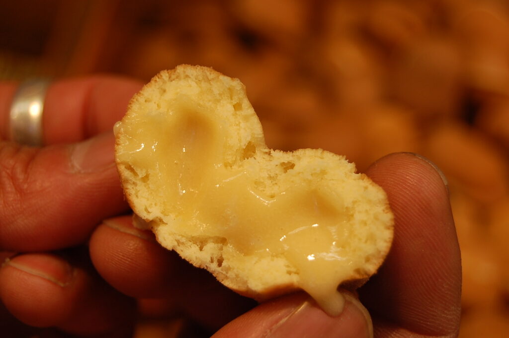 ふんわりとやらかいベビーカステラの中にはとろりとした半熟クリームが・・